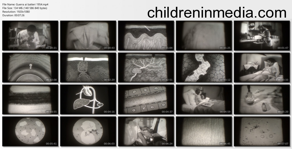 Guerra ai batteri - How Our Bodies Fight Disease![]() Year: 1954 Country: USA Section: documentary Tags: bathing, boy Description: The film uses animation to show how the skin and mucous membranes, the lymph nodes, and the antibodies and white corpuscles in the blood work to defend the body against disease. It points out how immunization aids in the defense. Video Added: 24.03.2026 |